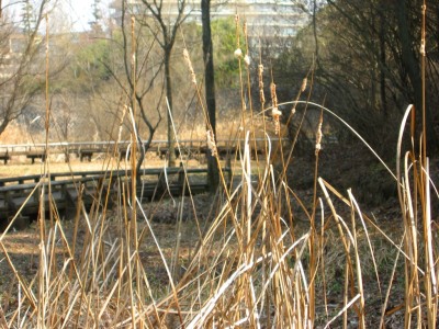 湿生植物園のガマの穂がわずかながら残っています。綿みたいで触ると気持ちが良いです。 |