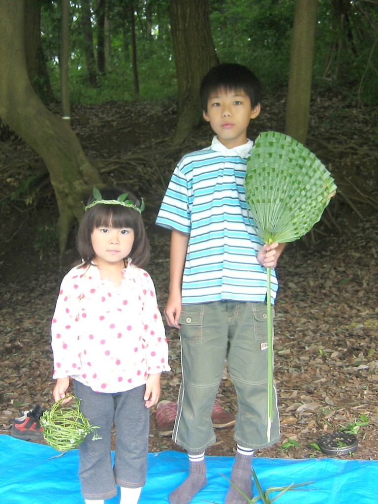 こちらはシュロの葉を使ってなにやら作っています。どんなものができるのか楽しみです。 |