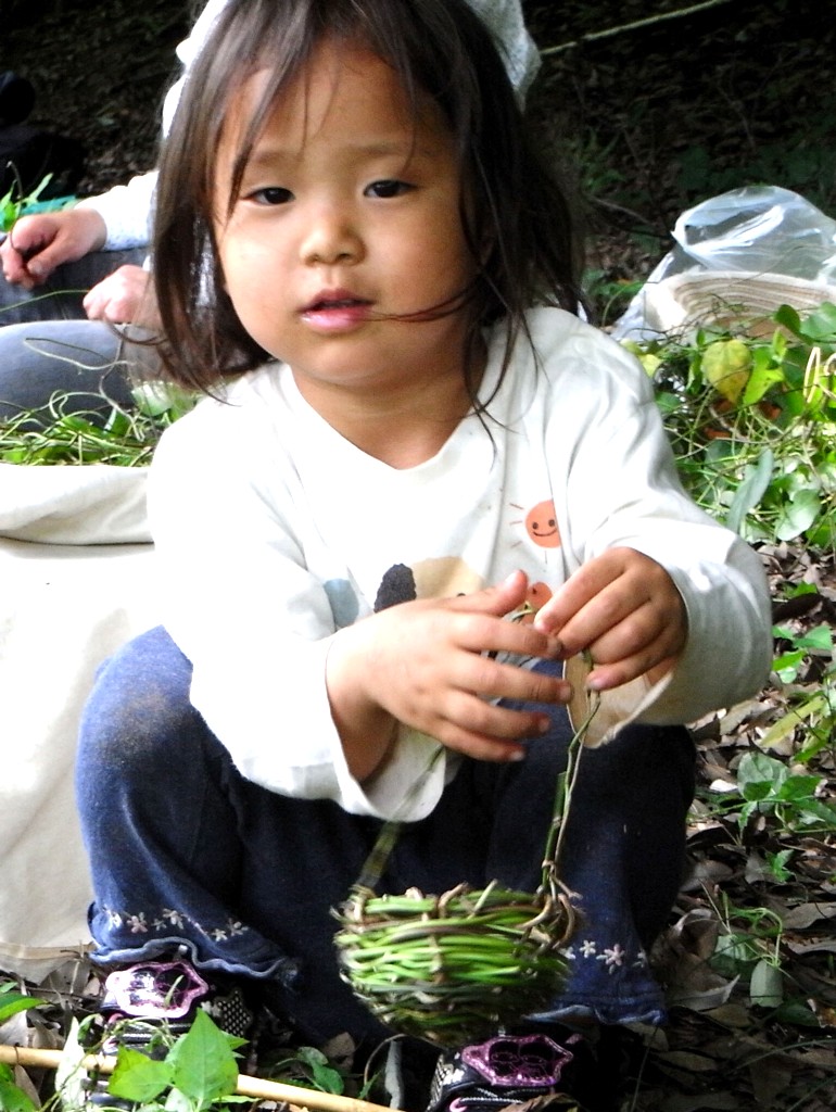 子どもたちもカラムシを持ってお手伝いです。とても満足そうです。 |