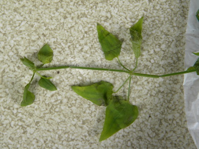 アカネの特徴は、ハート型の4枚の葉、四角くトゲトゲした茎です。 |