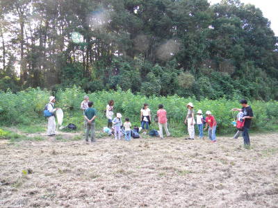 夕方の観察会ということで、この日だけは午後3時に集合です。昼間は猛暑だったため、疲れてこれなかった人もいましたが、ヤマナラシ広場には多くの方が集まりました。 |