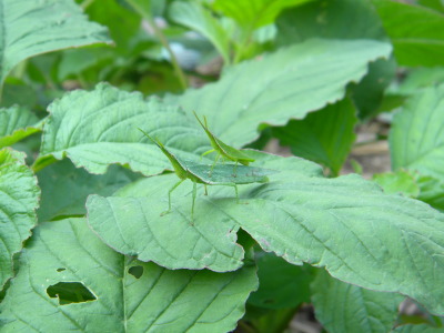 おなじみオンブバッタです。下の大きいほうがメスなんですね。 |