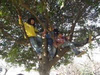 お昼ごはんを頂いた後も、子供たちは走り回る。何をやっているの?あれ、おとなの靴をどこに隠した! |