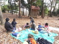 遊びが一段落したら、小町井戸のまわりで木の実の観察。 |