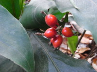 ショウガのような草になっていた赤い実。中は白でした。何の実でしょうか。 |