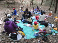 思い思いの場所で、お弁当をいただきまぁす。後片付けも自分達で。 |