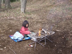 火の前を独占!でも