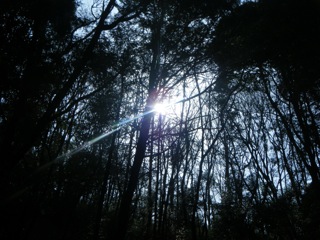 どんどん行っちゃう。 ふと見上げると、枝の間から青空が。