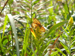 手入れされているおかげで、ここにはたくさんの種類の虫や魚がいます。 これはツマグロヒョウモン? |