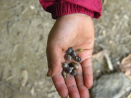 早速、崖滑り!大人も子どもも、おしりは泥んこ。大きい子は、小さい子を助けてあげるのです。 |
