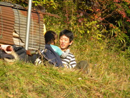 単身赴任のお父さんに会える時間が短いから、だっこ。 |